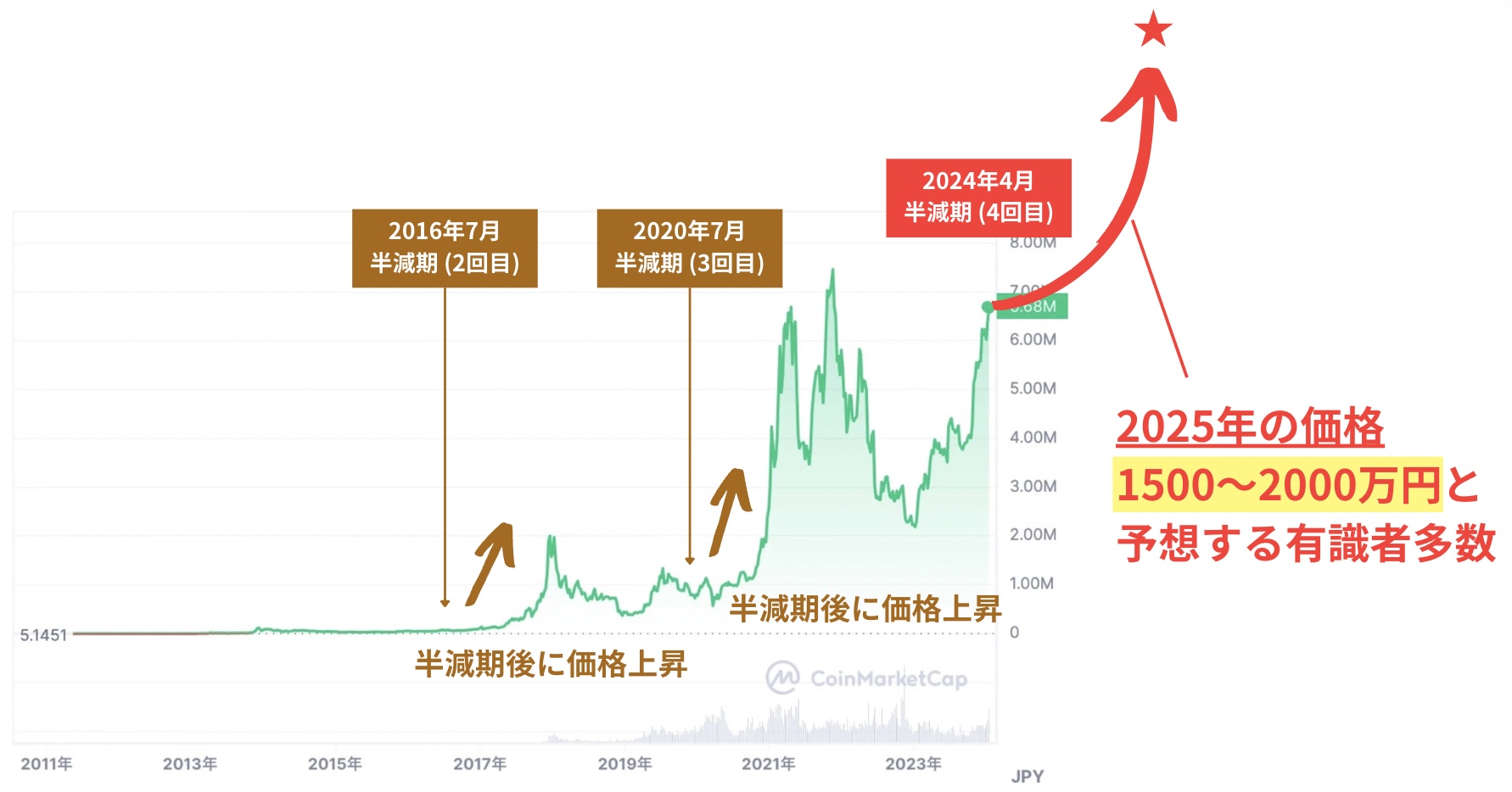 過去のチャートを見ると、『半減期の後はビットコインの希少性が上がり、価格は上昇傾向』になっていることがわかります!